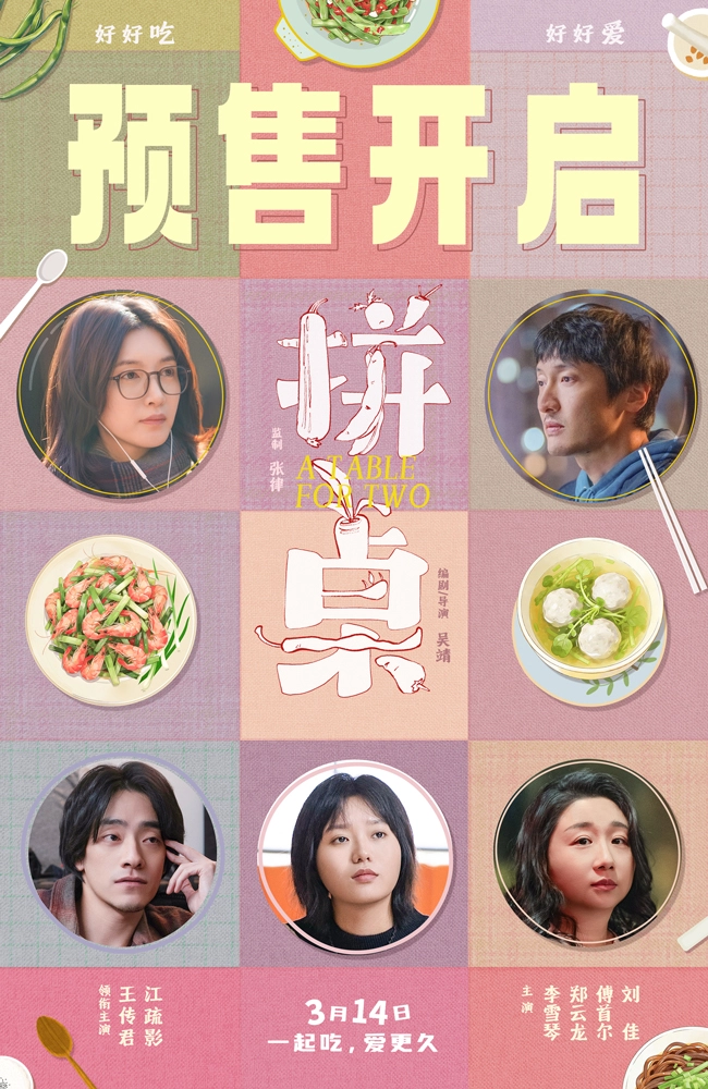 今日,由上影集团领衔出品,张律监制,陈洁担任制片人,吴靖担任编剧并执导,王传君、江疏影领衔主演,李雪琴、郑云龙、傅首尔、刘佳主演,王彩平、杜家毅特邀出演,吴冕、白举纲、田野(老四)特别出演,田小洁、罗海琼、齐溪、许龄月、葵葵友情出演的电影《拼桌》官宣开启预售,并发布“爱人爱己”版终极预告、“胃爱心动”版终极海报以及预售海报。由王传君饰演的陆拾谷对美食有着独到的见解,而由江疏影饰演的张嘉怡则对吃饭这件事充满仪式感,两个擅长用美食治愈生活的人因为拼桌相识成为饭搭子,在一次次的同频中滋养出微妙的默契与陪伴,开启了从“饭饭之交”到灵魂知己的同行治愈之旅。电影将于3月14日全国上映,王传君江疏影携手演绎同频老吃家的烟火气爱情,敬请期待!