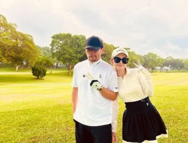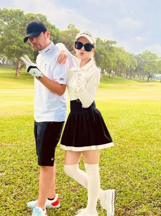 On July 18, Jay Chou shared a photo of playing golf with his wife Kunling, writing, "I usually like to wear it, but listen to my wife today" and sprinkle dog food!