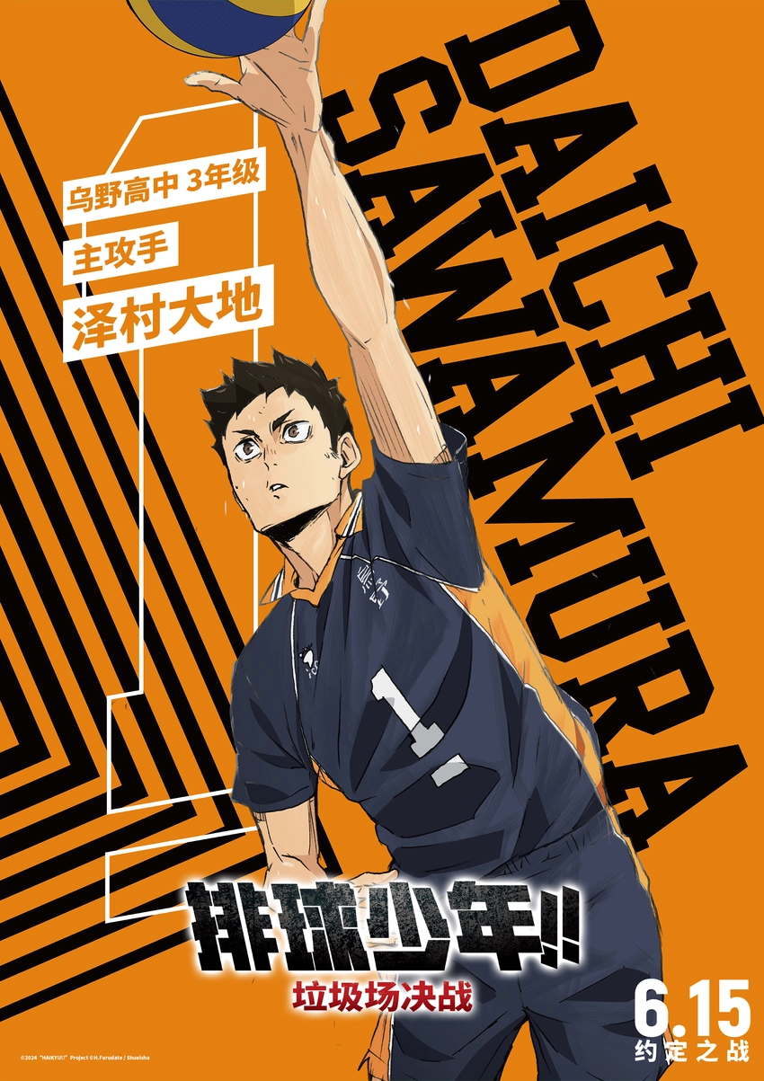 Subsequently, officials released posters of members of the black field, such as Firefly Yamaguchi, Yamaguchi Yamaguchi, Tawamura, Kanahara, Dongfengxu, Nishi, Tanaka, and so on. With very different personalities, they gathered because of their love for "volleyball". When the gears kept clenching, the strength of the team made "Ueno" shine on the stage of the national competition. In the poster, they are dressed in neat uniforms, their expressions are firm and full of fighting spirit, smashing, passing, jumping, saving, warm-blooded tension and sense of movement. They once lost the Yingju high school volleyball department in the practice match, but in this game that can not be repeated, the "little crows" are about to spread their wings and show their fighting passion and competitive style.