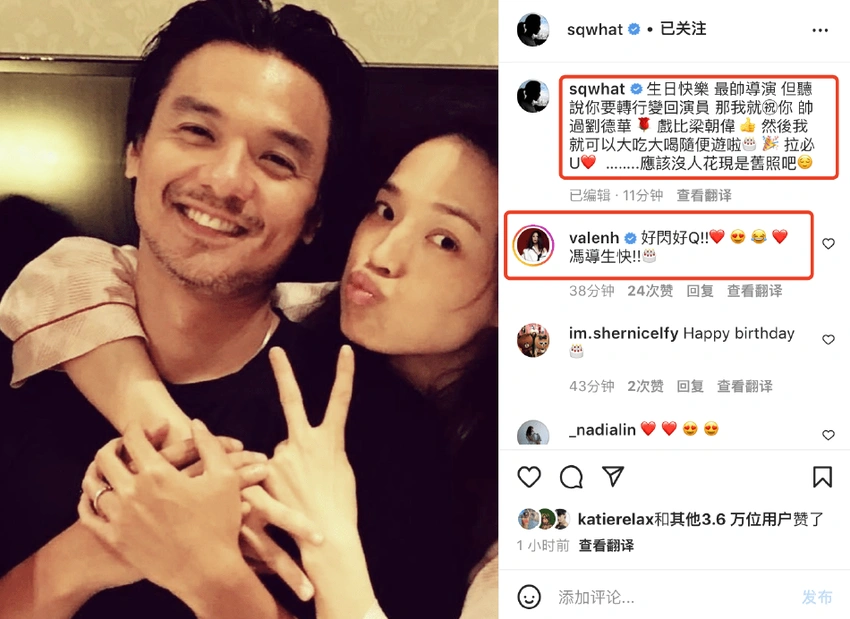 On August 9, Feng Delun's 48th birthday, Shu Qi posted a photo of the two to celebrate her husband's birthday. The accompanying article also wrote: "Happy birthday, the most handsome director, but I heard that you are going to change careers to become an actor, then I wish you are more handsome than Andy Lau, the play than Tony Leung." In the photo, Shu Qi hugged her husband from behind, she pouted and acted cute, and she was very cute than Ye, while Feng Delun smiled happily and could not hide her handsome stubble.