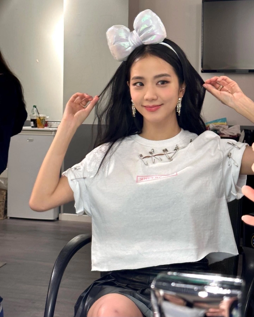 Jin Zhixiu, a member of BLACKPINK, shared the backstage photo of the concert in Berlin on the social platform, wearing a white bow hairband lovely and pure.