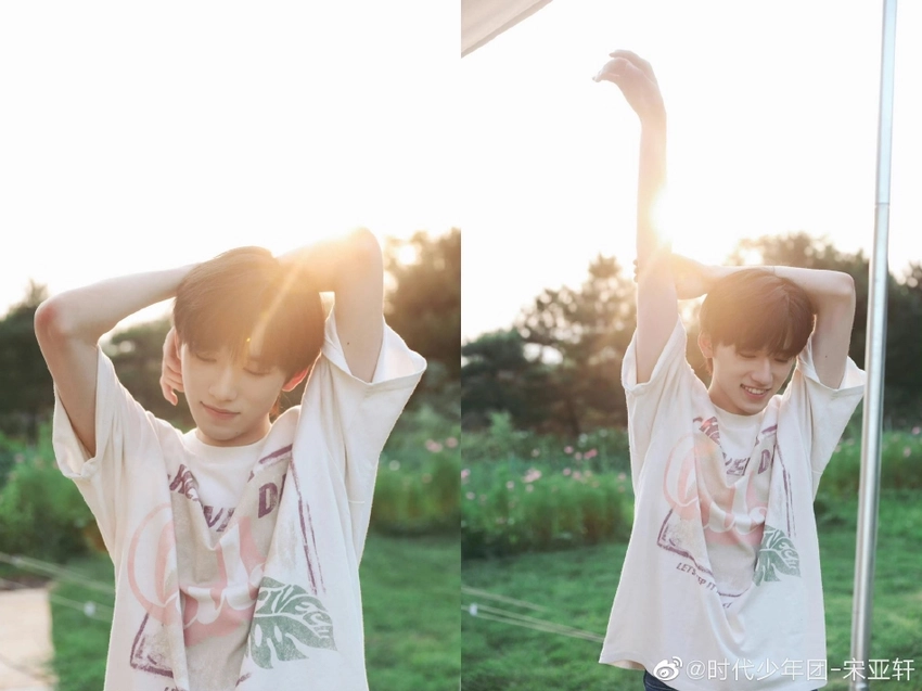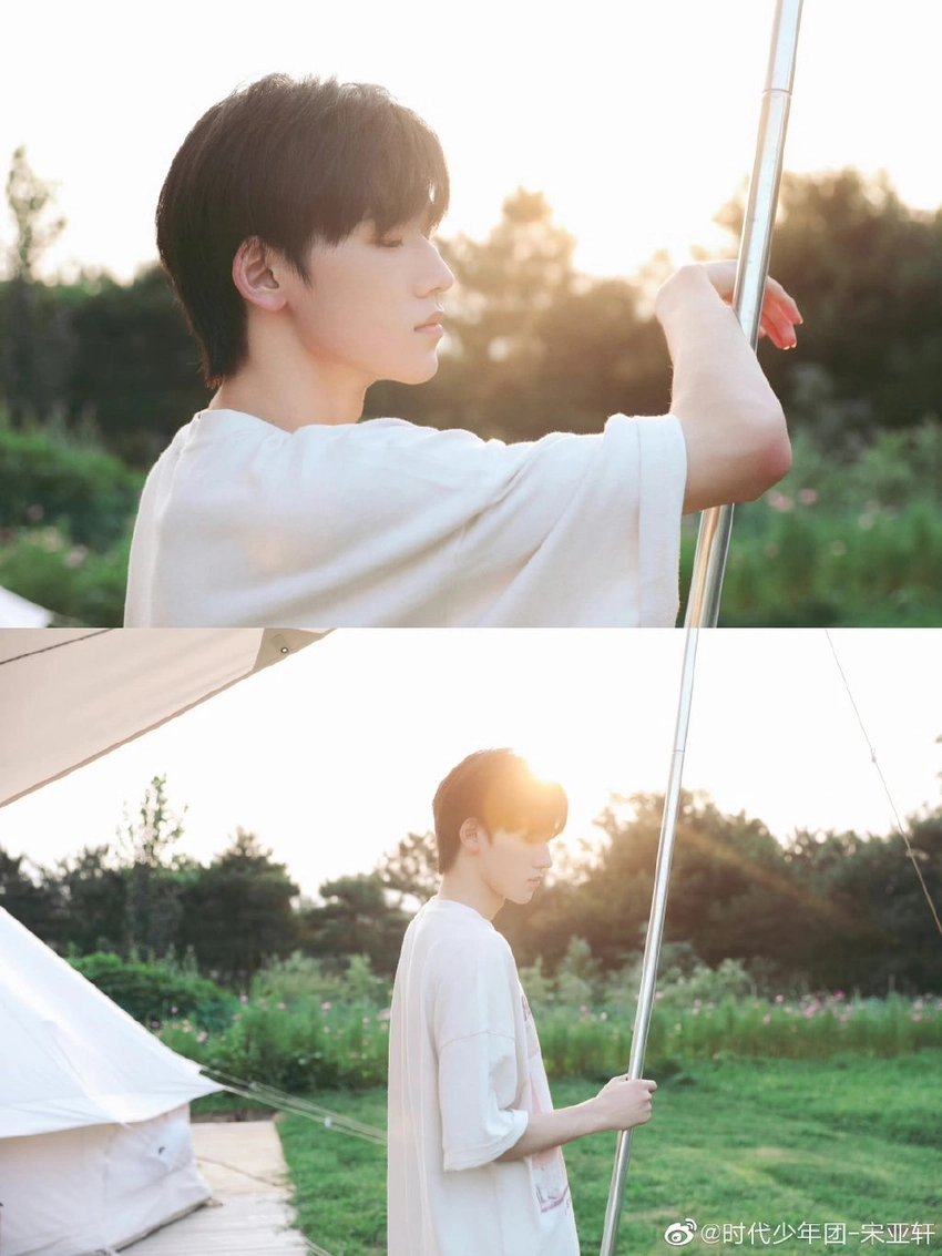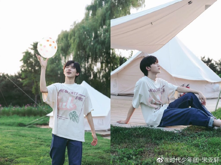On the 7th, Song Yaxuan shared a group of grass camping photos. In the photo, Song Yaxuan is bathed in the sun, smiling at the camera, refreshing and handsome.