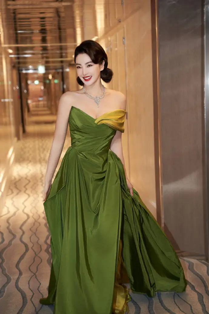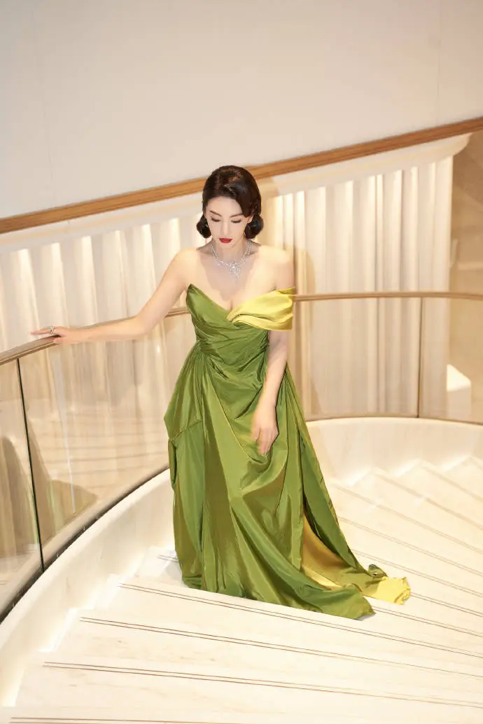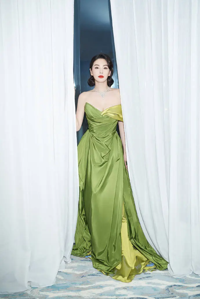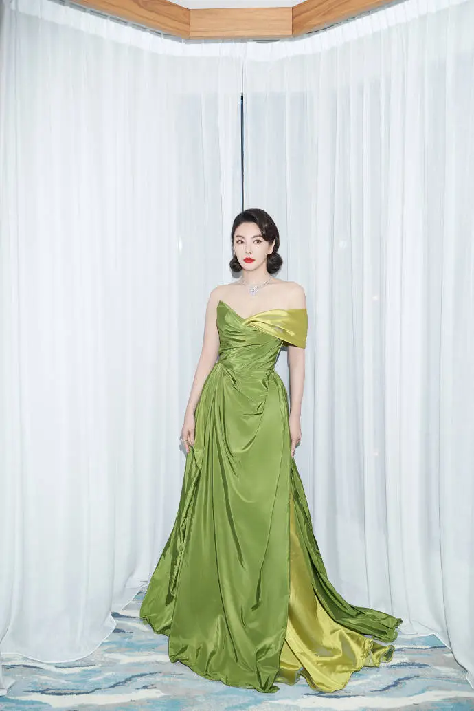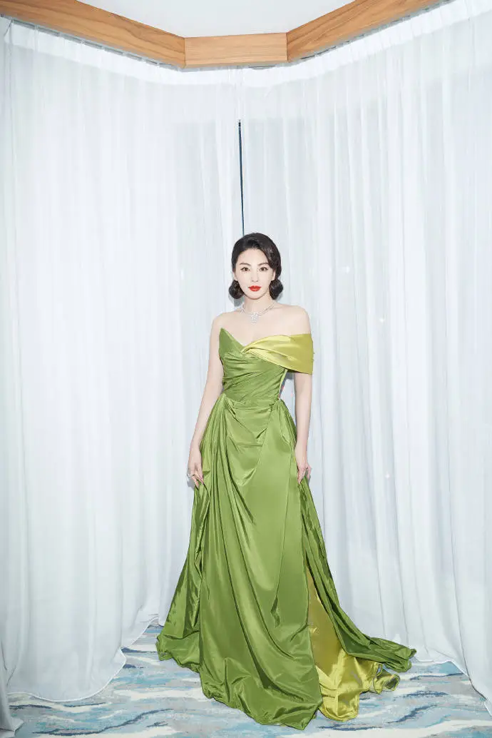 On May 21, Zhang Yuqi Studio posted a picture of her participating in an event in Cannes this year. In the photo, Zhang Yuqi recreates the classic green dress of 2013.