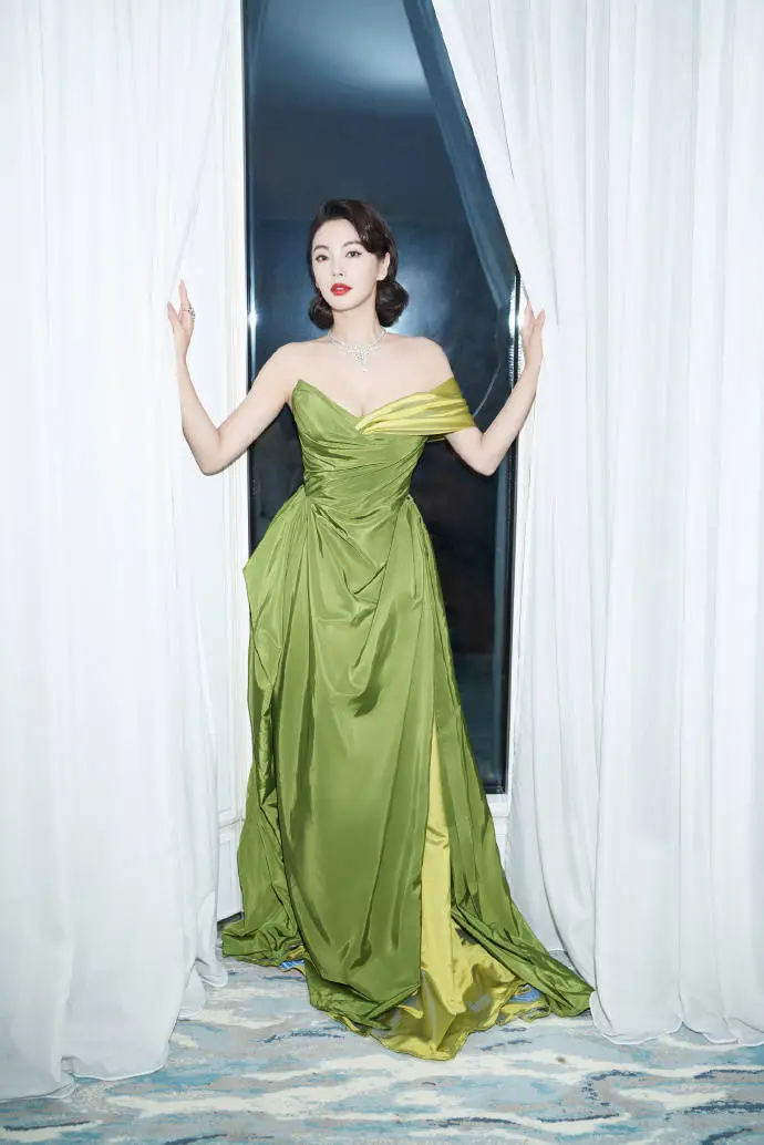 Zhang Yuqi reappears the 2013 green dress in the shape of a retro actress and her beauty will last forever.