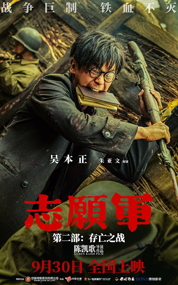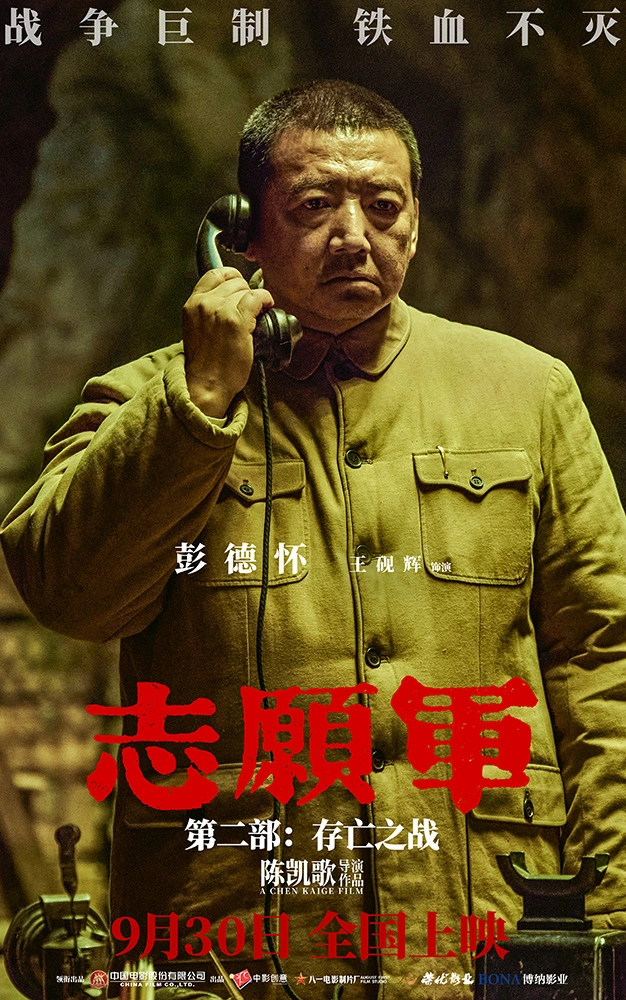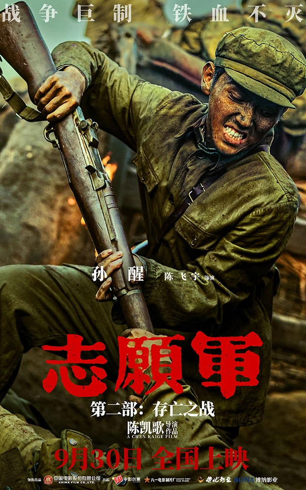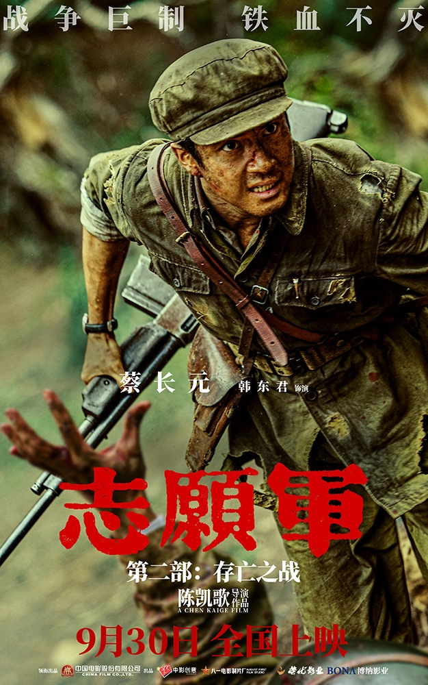 The film "volunteers: the Battle of Survival" is led by China Film Co., Ltd., produced by China Film Creative (Beijing) Film Co., Ltd., Bayi Film Studio, Beijing Rongyou Film and Television Culture Media Co., Ltd., Beijing Bona Film Group Co., Ltd., directed by Chen Kaige, will be released nationwide on September 30, 2024.