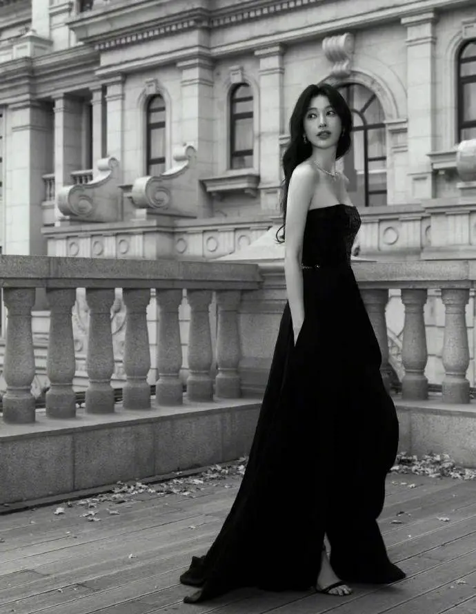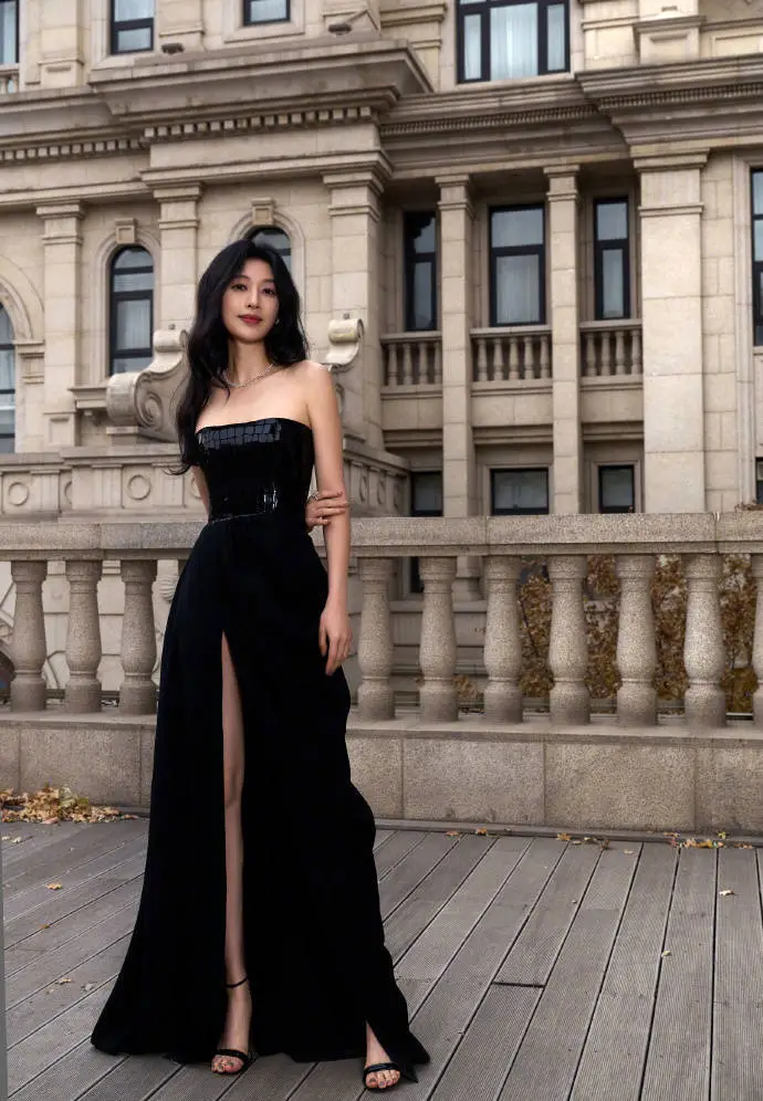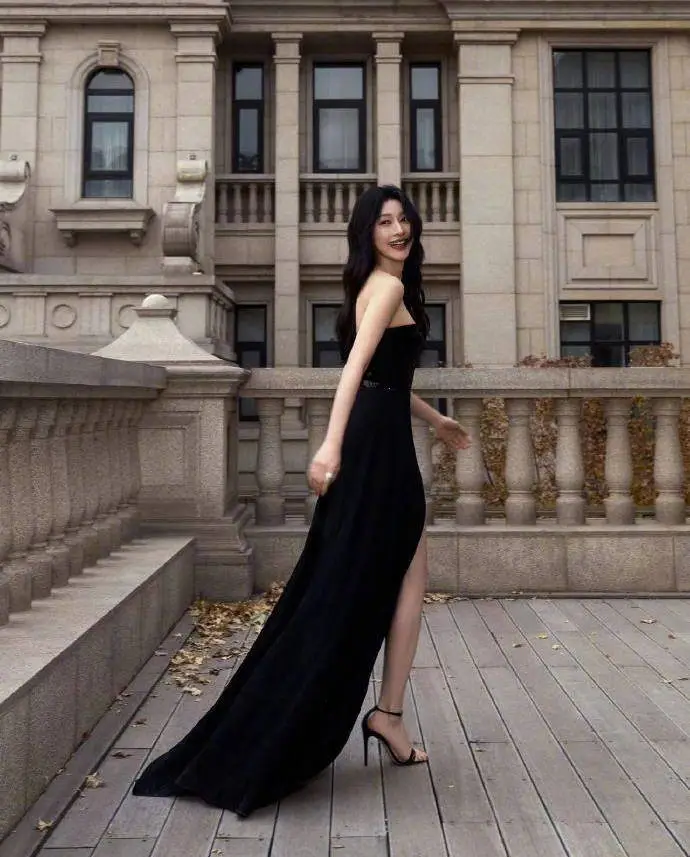 On December 10, Zhang Li posted a group of photos of her wearing a black dress with a slit on her personal social account.