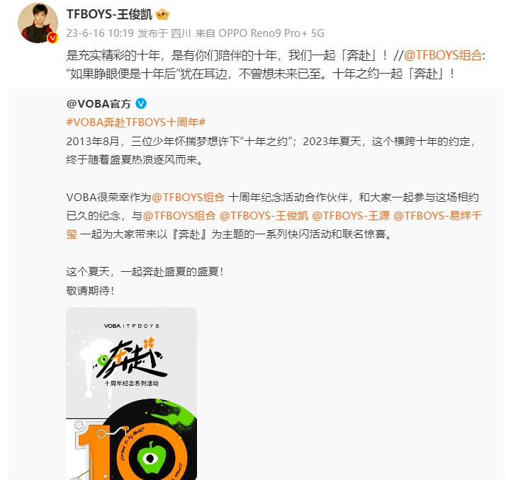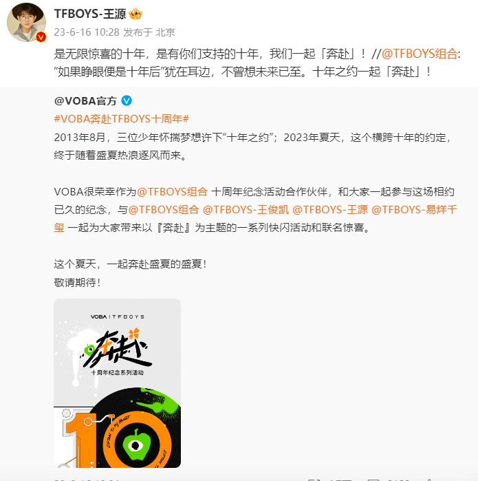 On June 16, the concert official announced the 10-year appointment of TFBOYS. Wang Junkai, Wang Yuan and Yi Qianxi forwarded the TFYS 10-year contract with Weibo and went to the 10...