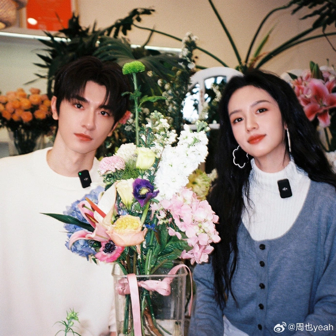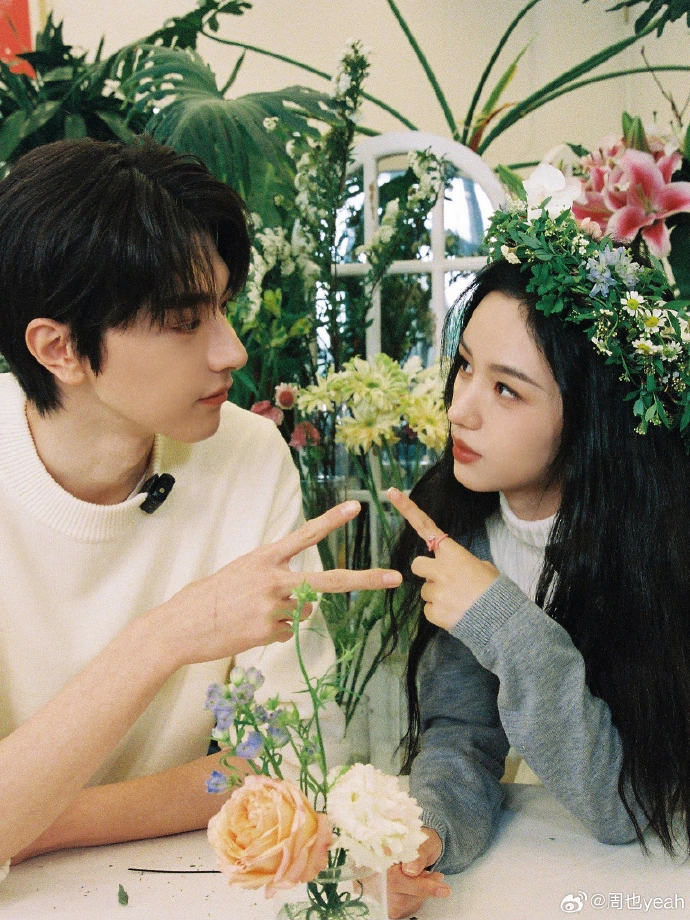 On March 14, Zhou also posted a photo with Lin Yi on social platforms and praised Lin Yi:"The wreath is good." In the photo, Zhou also wears a wreath, and Lin Yibi eye, cp feeling full!