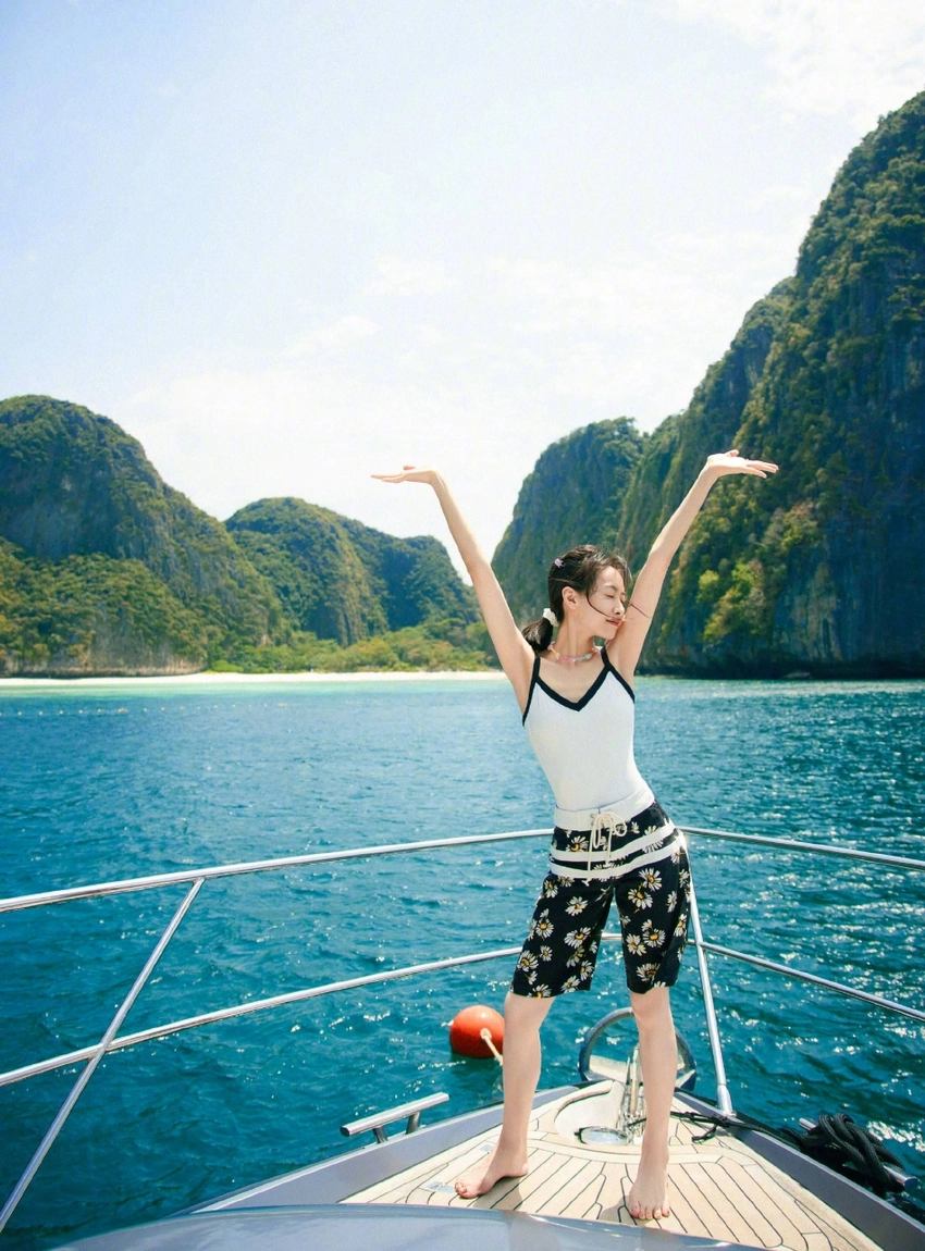 On February 20, Song Qian posted that she was photographed on an island holiday in Thailand, holding her face in the sun, and the feeling of a young girl came.