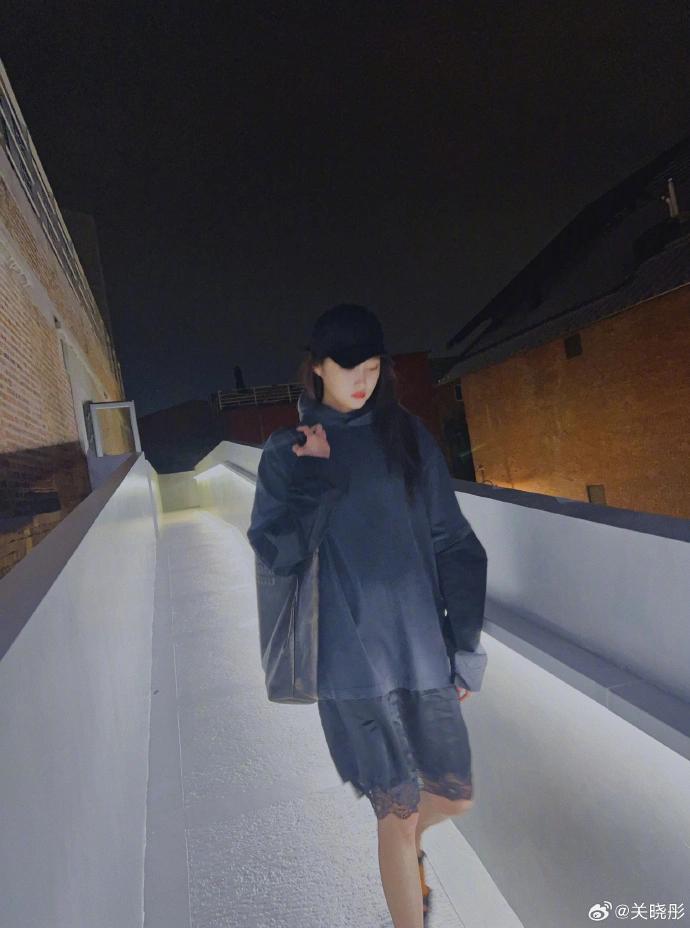 Guan Xiaotong posted a photo of her cheek on her cheek after work. The delicate film on her side is full of story.