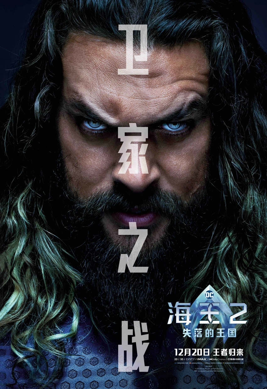 The flaming action adventure blockbuster "Sea King: the lost Kingdom" released today with a new trailer and a set of three character posters, produced by Warner Bros. and returned after five years, shows audiences the key words of the lives of King Arthur, Aum and Black manta rays, and reveals a lot of top-secret information about the lost Kingdom. It is understood that before the assembly of "Sea King 2: the lost Kingdom," the return of the original king, including director Wen Ziren, starring "Sea King" Jason Moma, Patrick Wilson, Amber Hilde, Nicole Kidman and other Hollywood stars have all returned, will be ahead of North America to land in mainland China on December 20.