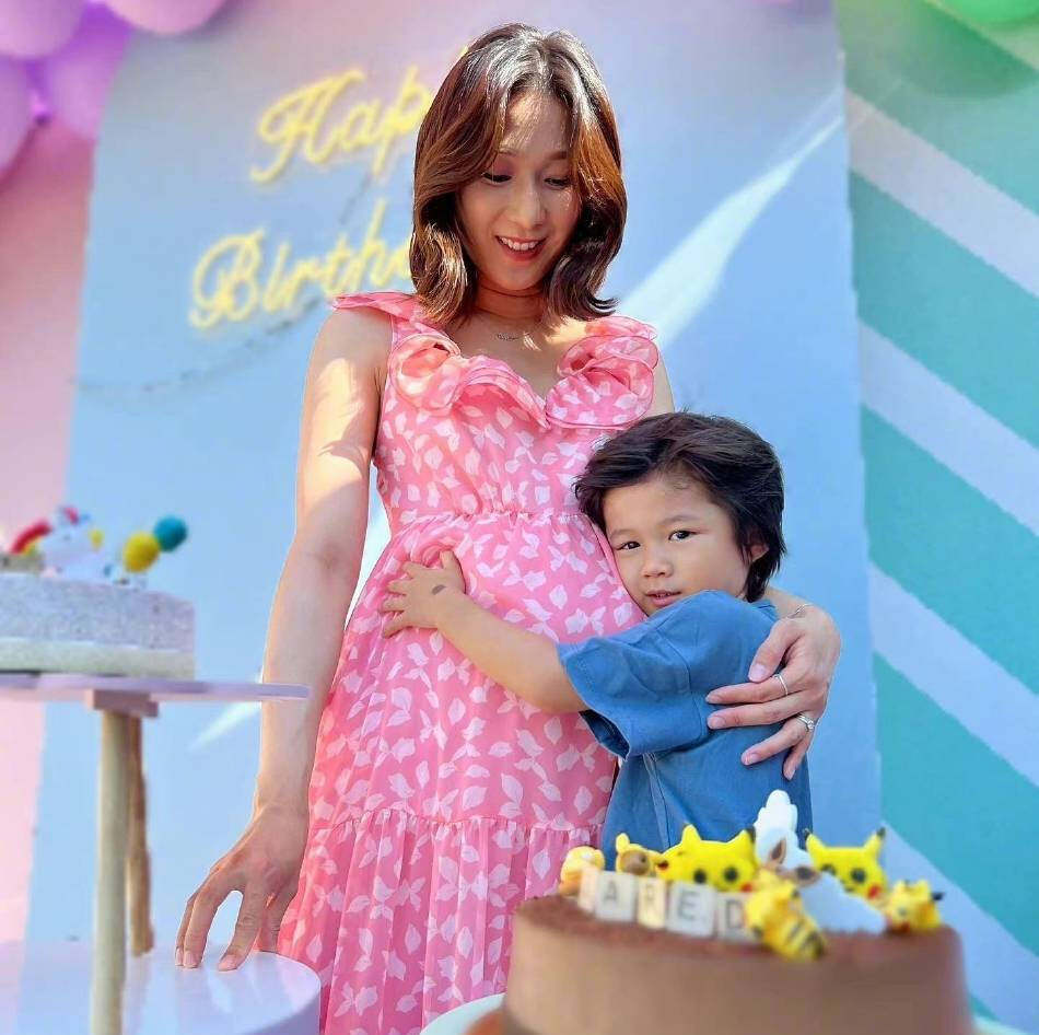 Zhong Jiaxin's photo shows a warm picture of holding her children in her pregnant belly for the baby's birthday.