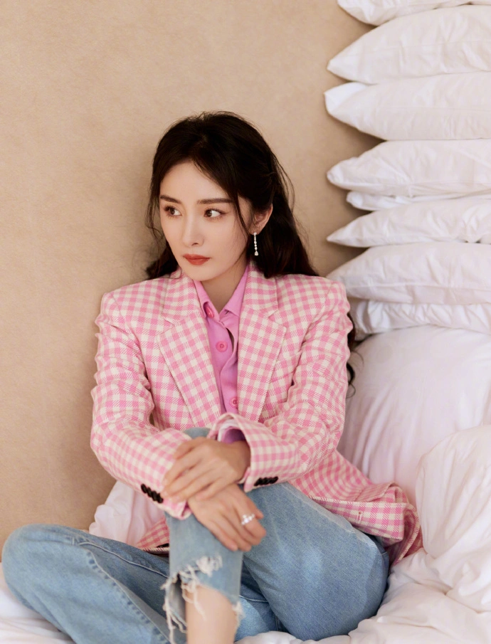 On May 25, the studio posted a group of photos of Yang Mi, showing her beautiful figure in a pink suit.