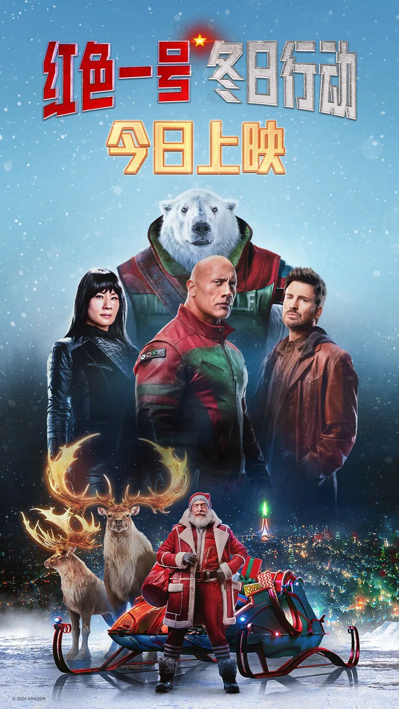 The 2024 finale action fantasy comedy movie "Red One" is released nationwide today, one week ahead of North America! Happiness is one step ahead, and the year-end carnival is waiting for you to join! This film stars Johnson,"Captain America" Chris Evans, Liu Yuling, Oscar winner J.K. Simmons, etc. It tells the story of Christmas approaching, but Santa Claus is kidnapped and disappeared. The real world and the mythical world must work together to save the annual grand festival. The film's reputation was outstanding after its premiere a few days ago, and its constant laughter and exciting plot was also well received!