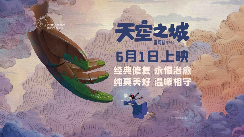 The classic animated film "City of the Sky" by Studio Ghibli is scheduled for the national release of International Children's Day on June 1st. The film is imported by China Film Group Corporation, issued by China Film Co., Ltd., translated by China Film Co., Ltd., and promoted by Tianjin Maoyan Weiying Culture Media Co., Ltd.