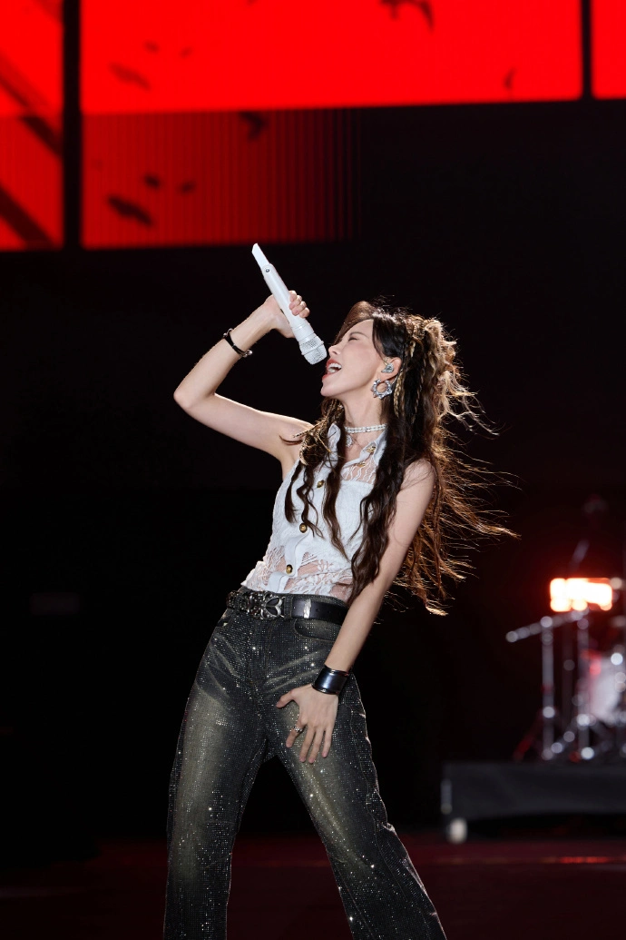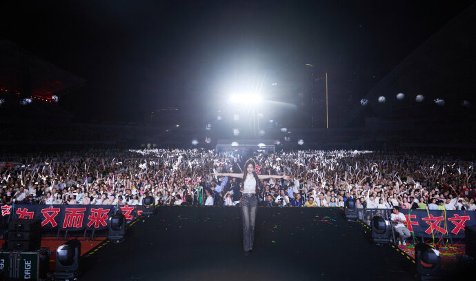 Recently, Yu Wenwen posted a set of beautiful pictures of her singing, accompanied by the text: Jiujiang is very hot, you are even hotter. I have seen every lamp.
