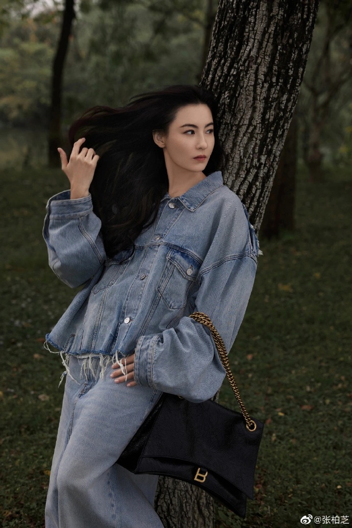 On the 25th, Cecilia Cheung posted a group of photo blockbusters. In the photo, Cecilia Cheung wears a light blue denim suit and her long hair is free and easy, beautiful and rustling.