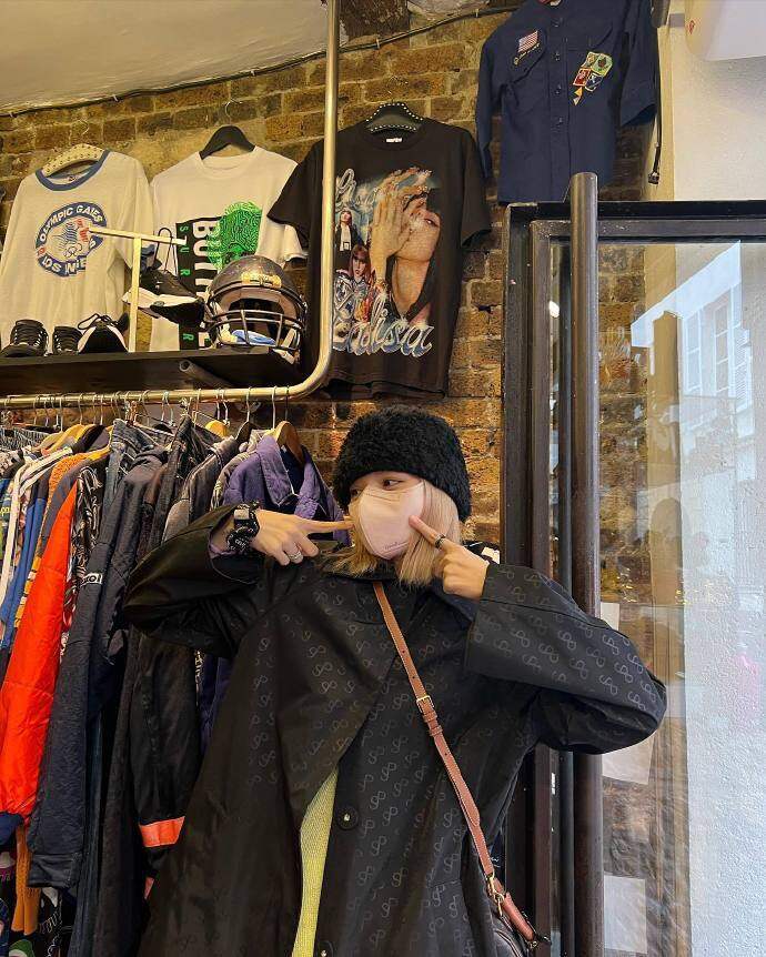 Lisa goes shopping in Paris and takes photos with her playful group photo on her clothes