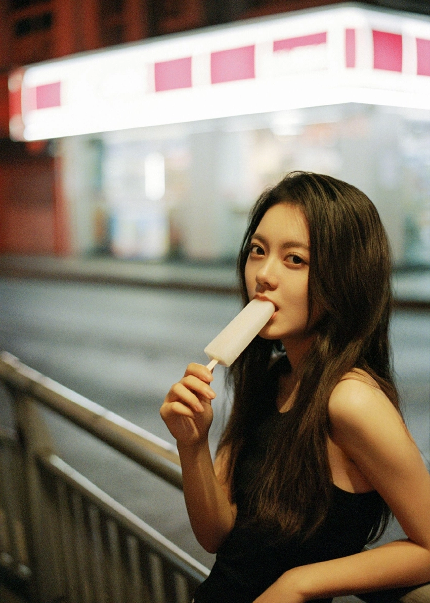 On Sept. 29, Zhao Jinmai Studio released a group of photos of her 20th birthday atmosphere. She wore a black sleeveless vest, her hands were randomly stuck in her pocket, and her eyes looked out into the distance, showing the maturity of a girl when she merged with the night.