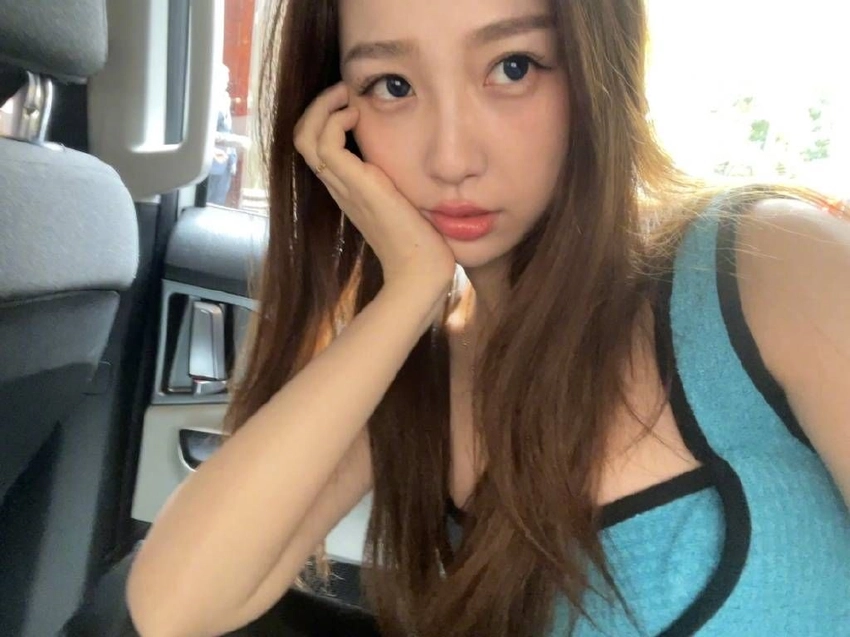 On May 15, Yu Shuxin shared a group of photos taken in Sydney. She wore a blue sports vest with a beautiful back and a small waist. She took a cute selfie in the car.