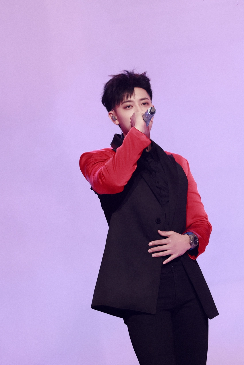 On the evening of the 27th, as the boss of Longtao entertainment and all-round artist, Huang Zitao led his artist yungk2 to make a handsome appearance at the 2021 top 100 anchor Party of "onethousand and one night", bringing you his three original songs of different styles - "consequences", "I give up" and "the rest of my life is you". His magnetic and infectious voice and delicate live performance perfectly explained the multiple charm of lyric rap. That night, Huang Zitao appeared in a black and red patchwork suit with a full sense of design, which was both fashionable and advanced, domineering and elegant, while the black shirt on the inside appropriately highlighted the mature and steady charm. The whole person was elegant and full of abstinence temperament. As soon as he appeared, he became the focus of attention, and the atmosphere of the scene was pushed to the highest point.