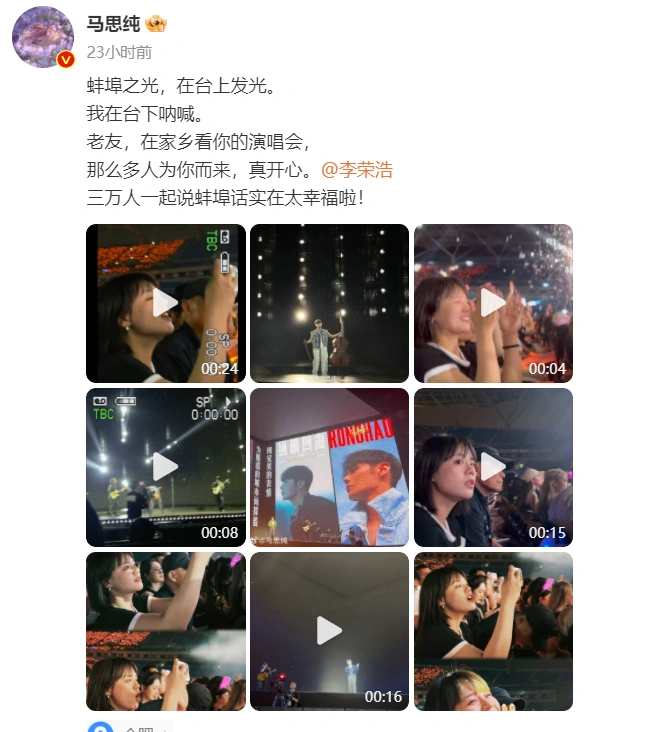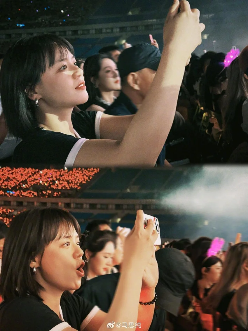 On September 10, Ma Sichun went to see Li Ronghao's concert and posted live photos. Ma Sichun became a little fan girl, taking photos with her mobile phone and singing with her fan...