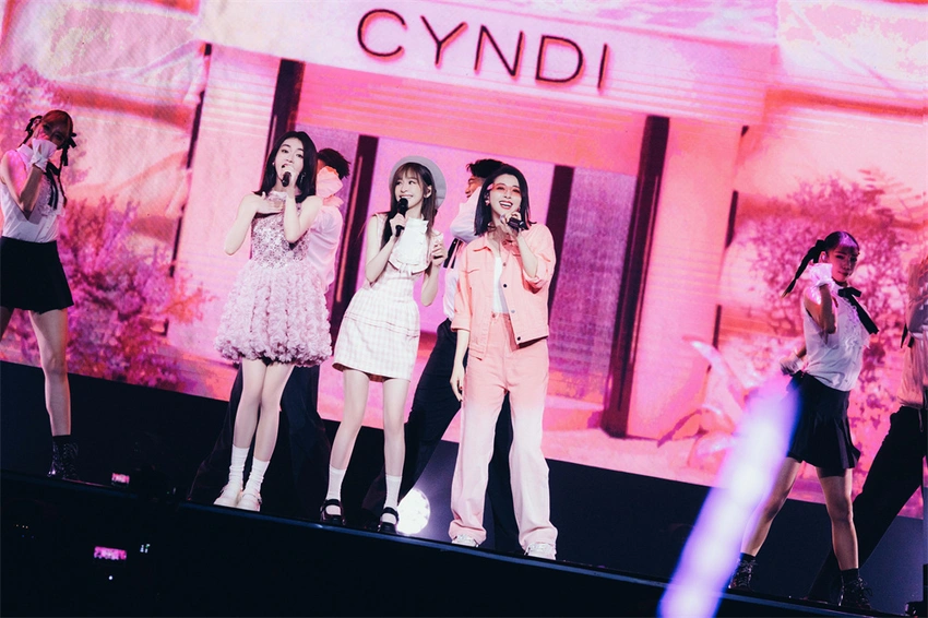 The biggest surprise of Chengdu Station came from the help of sisters. When the melody of "Love you" appeared, Huang Xiaolei and Wu Jinyan appeared on the stage in pink suits, and the whole audience immediately went crazy, and then the trio completed the performance of "Love you" tacitly.