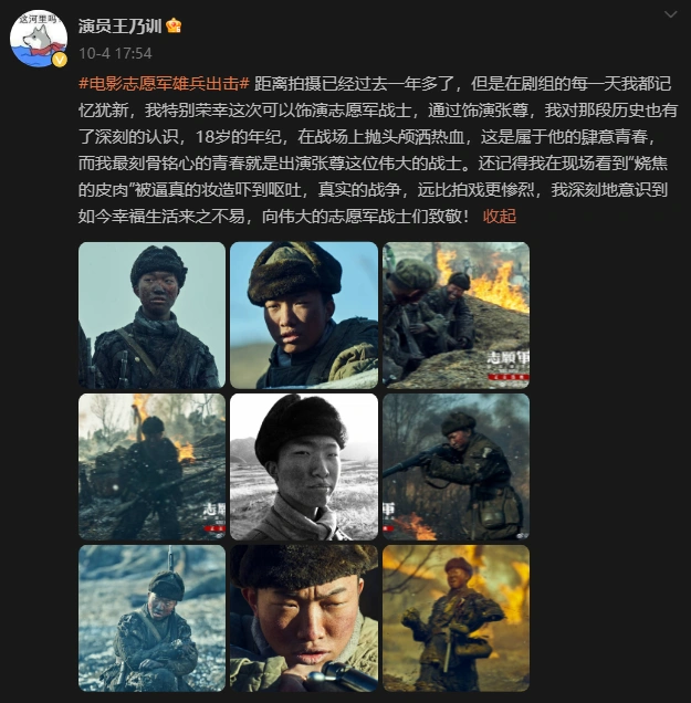 In the movie "volunteers", the first word-of-mouth of the National Day stall, Wang Naixun, gave an interpretation of Zhang Zun, a soldier of the third company.