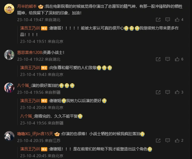 Actor Wang Naixun posted his feelings about acting in the film on the social platform, saying that he was honored to play the role and paid tribute to the great volunteers. Many netizens praised his acting skills as touching.