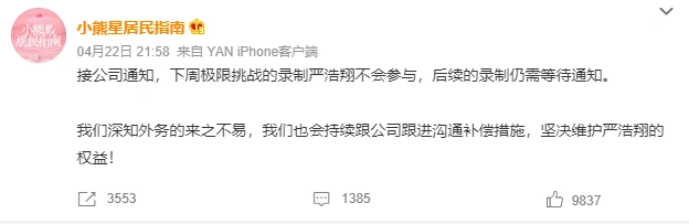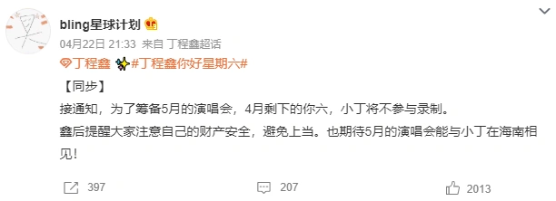 Ma Jiaqi, Ding Chengxin and Yan Haoxiang will suspend foreign affairs recording in the near future in order to concentrate on preparing for the May concert, according to the fan support club on April 22.