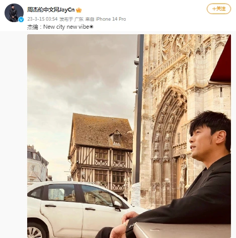 In the early morning of March 15, Jay Chou's personal social platform updated two landscape photos with the caption "New city new vibe", which was particularly leisurely.