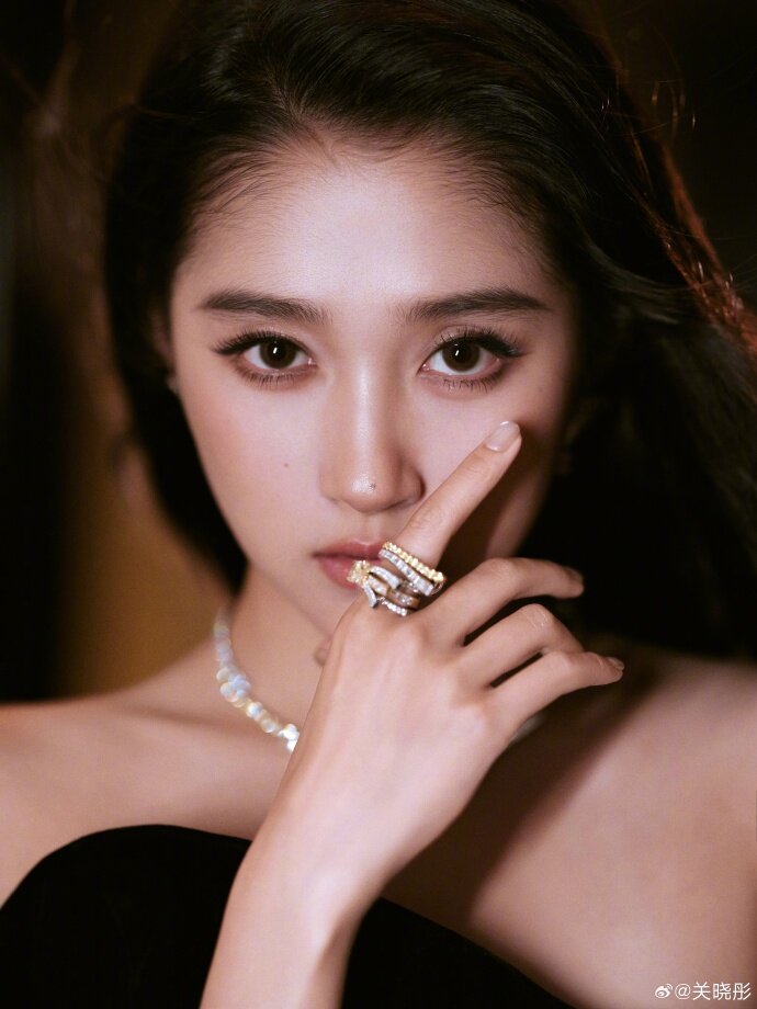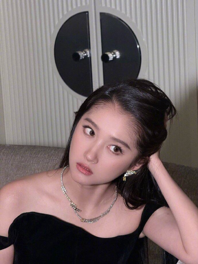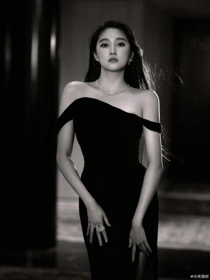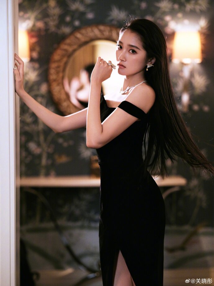 Guan Xiaotong wears an off-the-shoulder ceremonial dress and has beautiful legs that attract attention! Her eyes are cold and like a black lotus girl