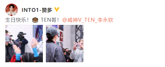 The 27th is the birthday of ten liyongqin, a member of Weishen v. On his birthday, into1 member zando also sent his blessing at the first time: "Happy Birthday! Brother ten!" He also showed photos of himself celebrating Li Yongqin's birthday and wearing candles and hair bands. It can be seen that the two people have a very good relationship. Subsequently, ten also replied, "thanks bro!"