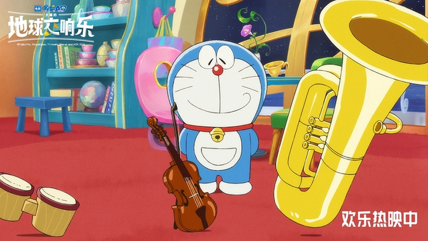 The film mainly tells the story of Doraemon and Nobita coming to the mysterious hall of music, using the power of music to help new friends restore their homes, work together against mysterious creatures, and protect the earth. In the special image of playing Joy released today, Nobita accidentally met Mi Jia, a young girl from the planet "Mujica". As a result, the five were invited to the music palace in the universe, behind this dream palace full of music and happiness. there is also a moving past. Because of the erosion of the mysterious creature, Mijia has become the only survivor on the planet. Growing up alone, she has always been eager to find a companion who can play music with her. In order to protect the "Last Pure Land", the musicians and robots in the temple constantly struggle with "Naoyizi". The arrival of Doraemon and his friends not only restored the wonderful temple to its former vitality, but also defeated it together. It also healed Mijia's lonely heart with happy music. The film shows the strange adventures of the partners, while playing music happily together, it also reflects the dual "healing power" formed by Doraemon and music. Whenever Doraemon accompanies everyone in his own way, this feeling of innocence and the emotional value of Doraemon are also important reasons why many audiences continue to support the film.
