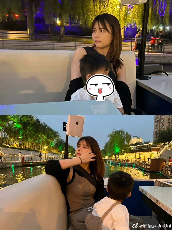 On the 23rd, last night, his wife Liao Yichen shared a group photo with her son Baron (Xiao Su) on a boat on the Liangma River in Beijing with the caption: "your best appearance is not that you own the world, but that even if you encounter waves, there is still light in your eyes." this is also the first public photo of Liao Yuchen and Su Xing after they were married and had children.