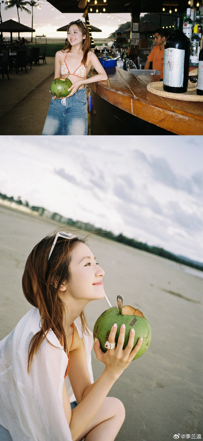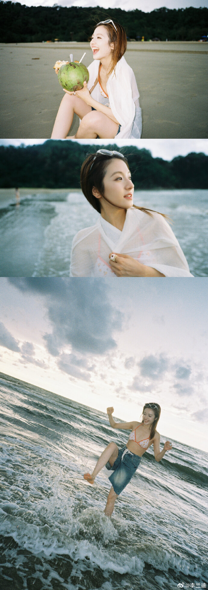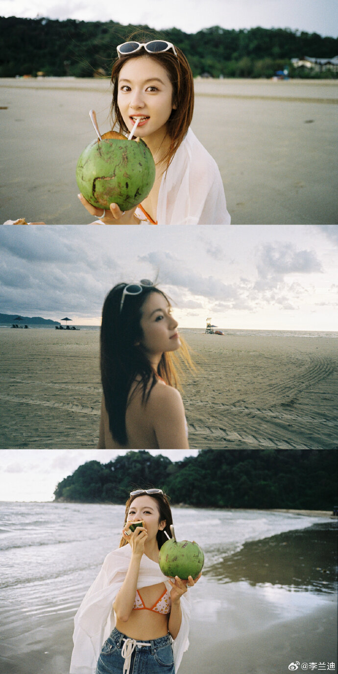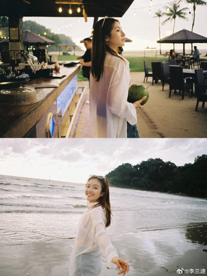 Jiuzhi Entertainment News Recently, Li Landi shared a set of beautiful photos on social platforms. In the picture, Li Landi wears a white sling and walks by the sea, freely and freely.