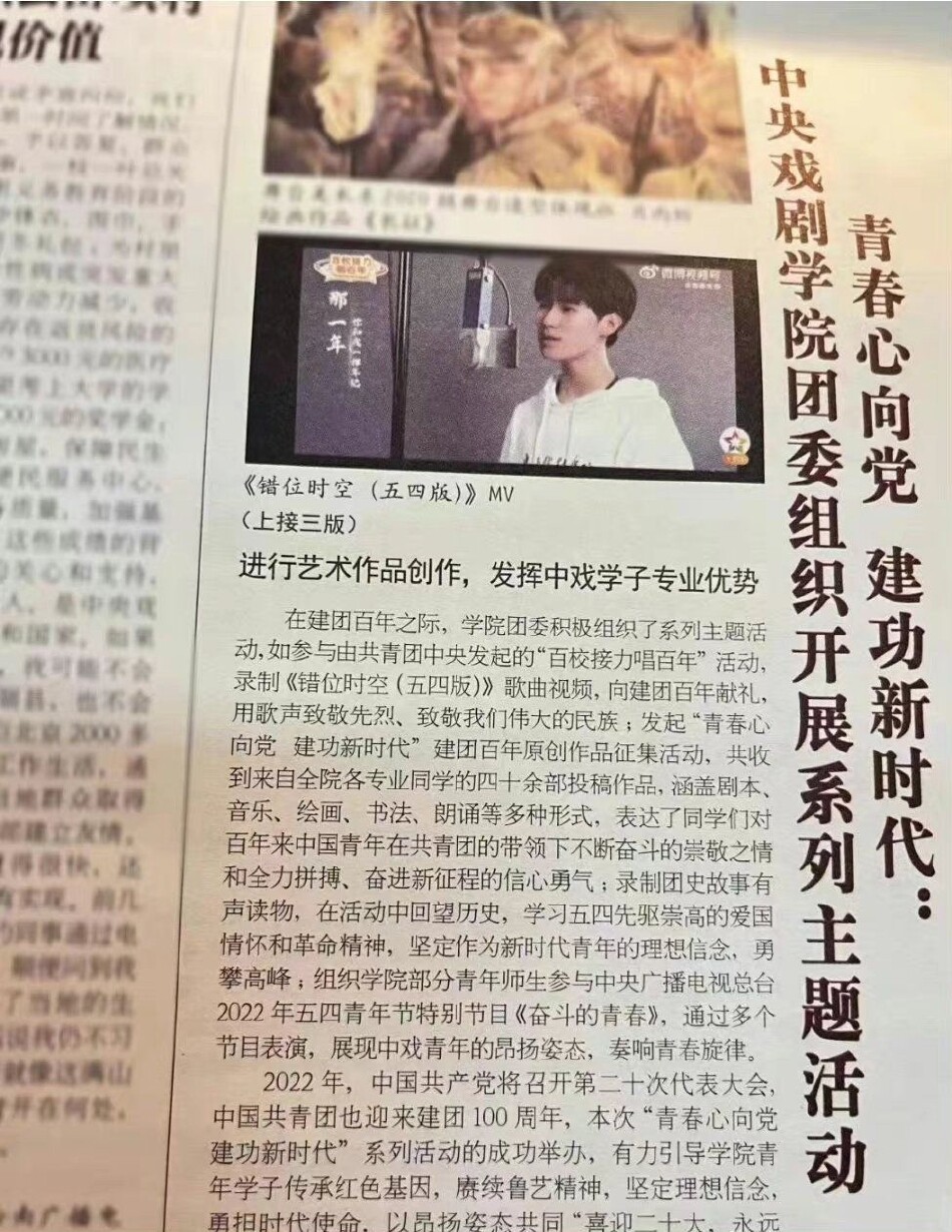 Recently, some netizens found that Zhang Zhenyuan's photo was published in the Chinese Opera School News, and fans praised "is an excellent sophomore Zhang Zhenyuan". Earlier, Zhang Zhenyuan also appeared in the Chinese opera campus activities many times.