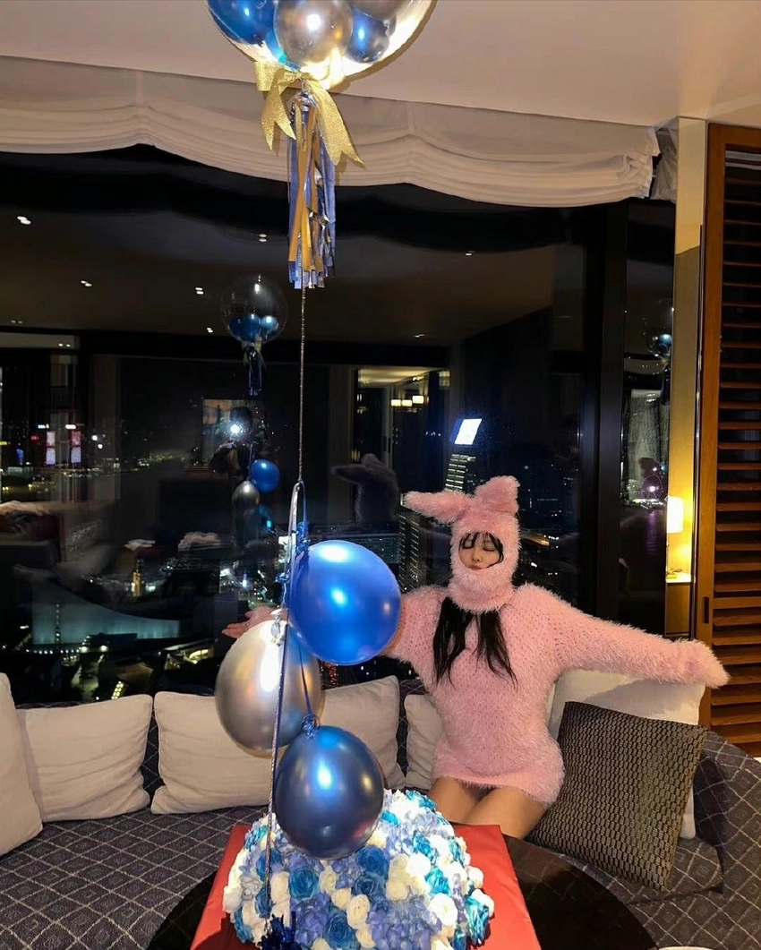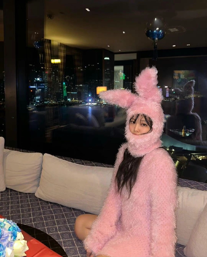 BLACKPINK member JENNIE posted photos of his 27th birthday in a pink rabbit costume to keep warm and cute.