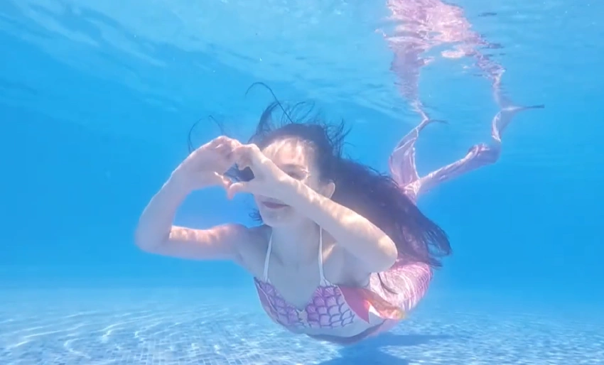 Xie Na basked in swimming vlog Mermaid modelling stunning playful comparison in the water