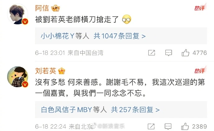 It is not easy for Mao to go to Liu Ruoying's concert as a guest and leave a message in the Ashin comment area.