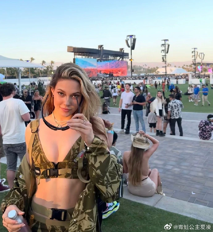 On April 18, Gu Ailing took a photo of herself playing in the Cochella Music Festival, wearing a camouflage-style bra and sunglasses, attracting eyes from her abdominal muscles.