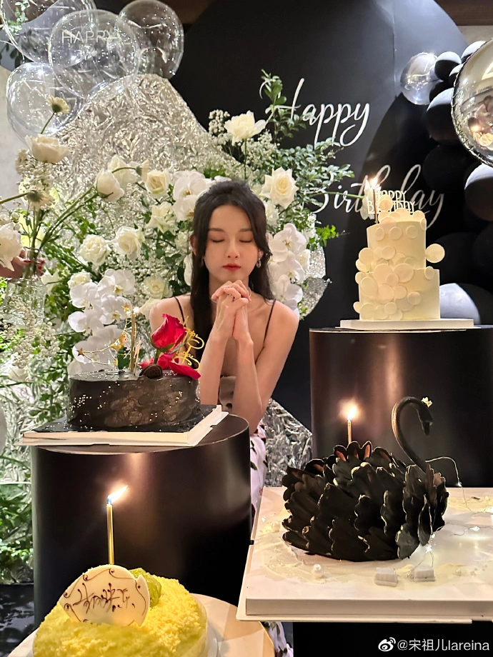 On the 23rd, Song Zuer posted photos of her birthday. She was wearing a white shirt and a rabbit ear cap. She was in a better mood than Ye Canxie.