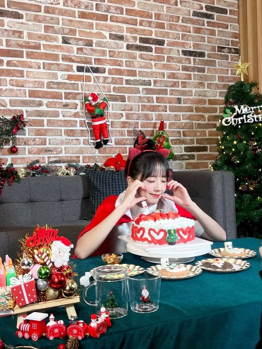 On December 24, Jin Zhixiu posted a group of Christmas photos, wearing a red coat and elk tiara, full of festive atmosphere.