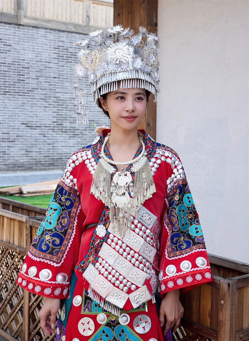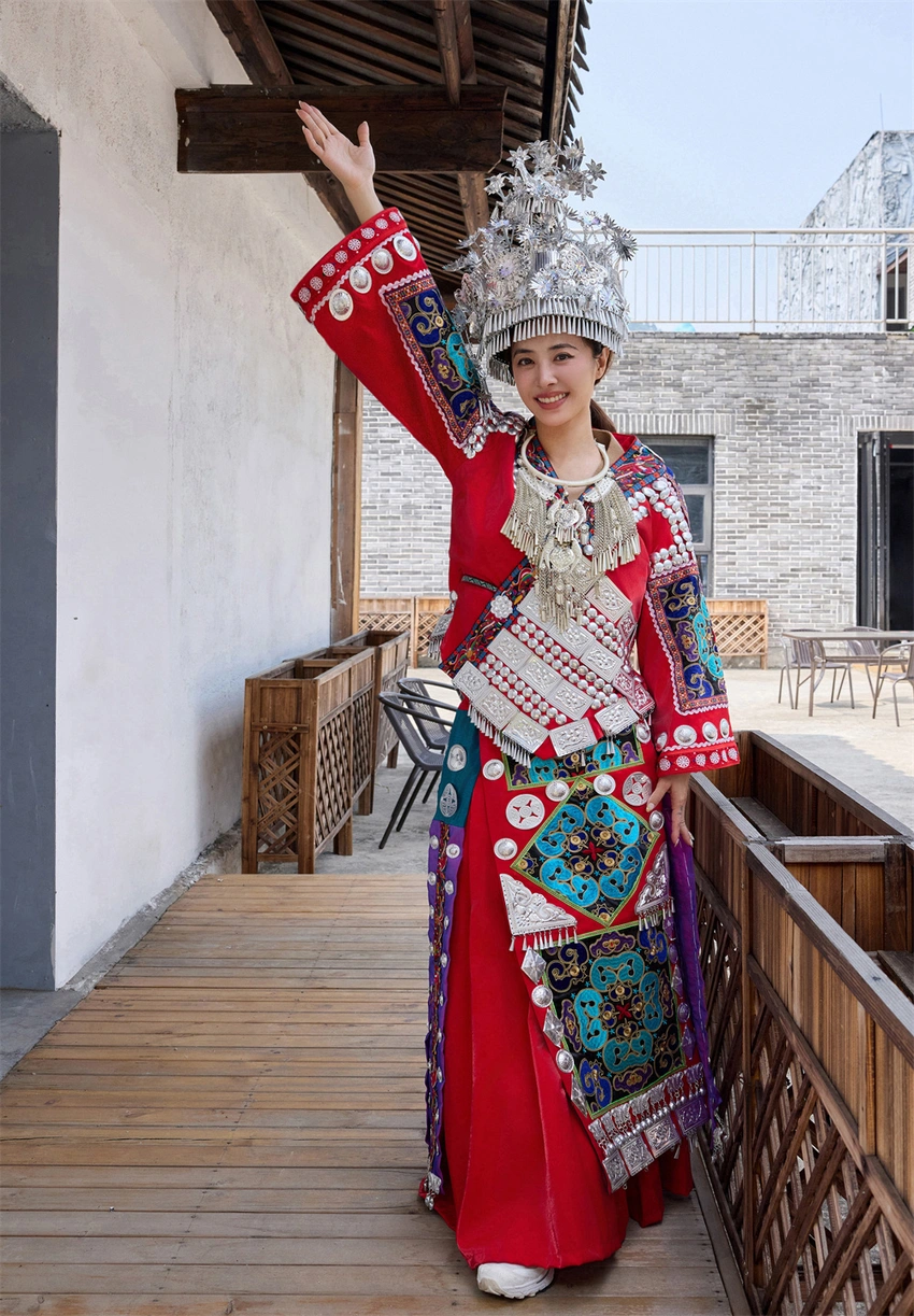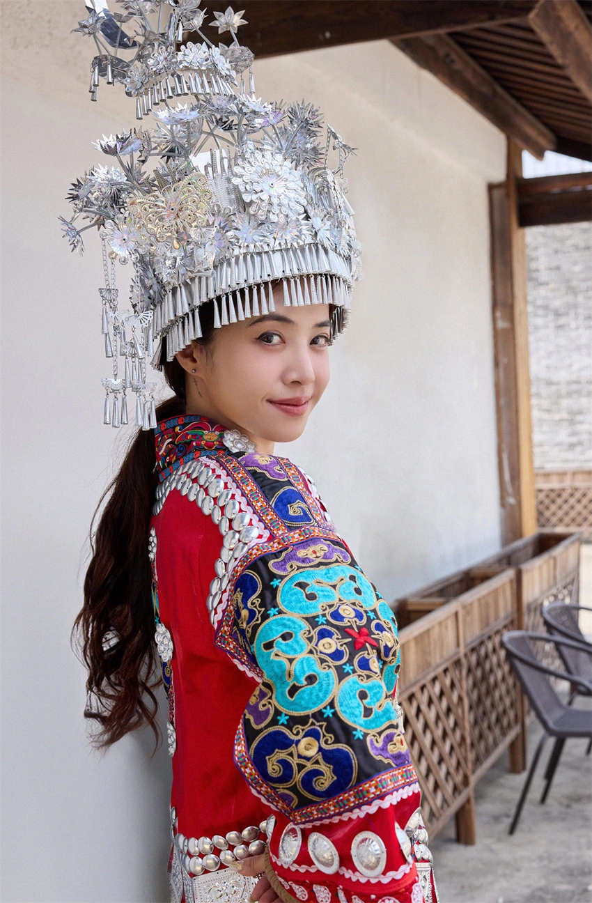 Jolin Tsai in Guiyang transformed into a Miao girl who loves to fold her ears and enjoy local culture