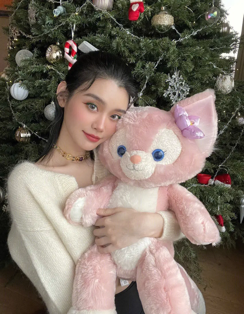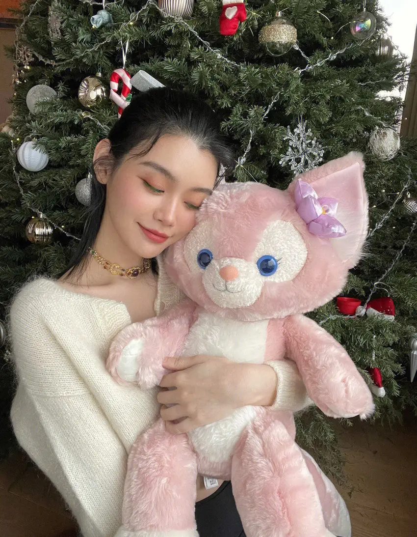 Xi Mengyao shares a set of Christmas photos on her personal social platform on December 25, showing her taking a group photo with Lina Belle in her arms.