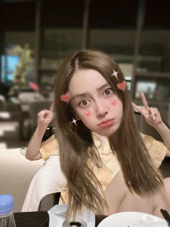 Jiuzhi Entertainment News on December 12, Angelababy posted the sixth palace grid cute with photos, super sweet big head cute special effects cute cute.