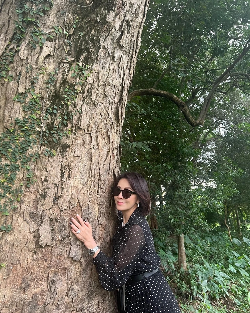 Jiuzhi Entertainment News on the 27th, Carina Lau shared her travel photos on her personal social platform, with an article saying she had a "Green Saturday". There are Liu Jialing, Wu Junru, Chen Kexin and other friends in the photo. Carina Lau wears a long dress to embrace the big tree and is close to nature. All kinds of pose can highlight the elegant temperament.