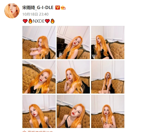 On Oct. 18, 23-year-old singer Song Yuqi posted a set of blond hair and red lips on a social platform to show off a good figure.