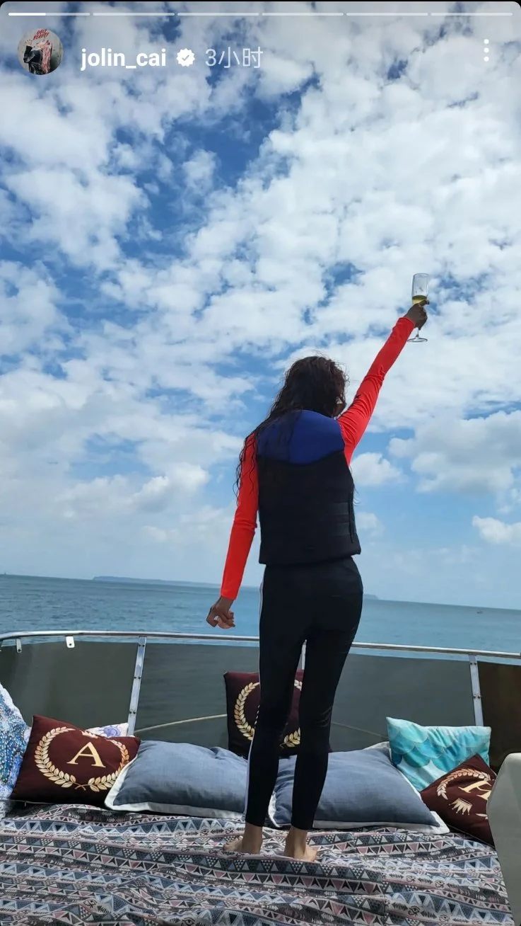 Jolin Tsai took photos with a smile on her face to celebrate her 42nd birthday, with slender limbs and good figure.
