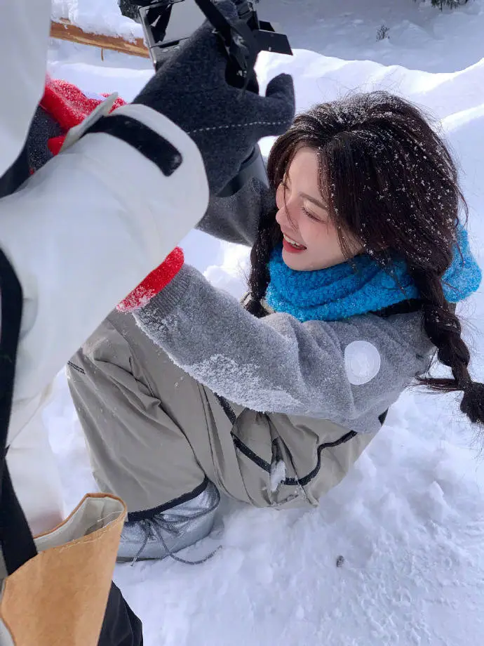 On December 11, when the first snow came, Yang posted a group of pictures of himself playing in the snow.